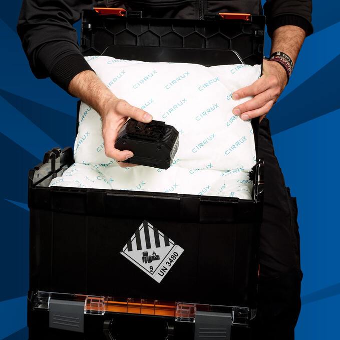 Du willst Lithium-Ionen-Zellen oder -Akkus sicher transportieren, ordnungsgemäß lagern und dabei alle gesetzlichen Anforderungen erfüllen? Kein Problem mit der Battery SafeBOXX. Die spezielle Kunststoffmischung ist BAM-zertifiziert (UN 3480) und für den Gefahrguttransport freigegeben. Im Inneren sorgt der integrierte Cirrux-Markeneinsatz für den entscheidenden Unterschied: nicht brennbar, nicht leitend und mit absorbierender Wirkung gegen auslaufende Elektrolyte. Selbst bei thermischer Reaktion im Akku bleibt das System stabil – Hitze wird aufgenommen, Risiken werden minimiert.