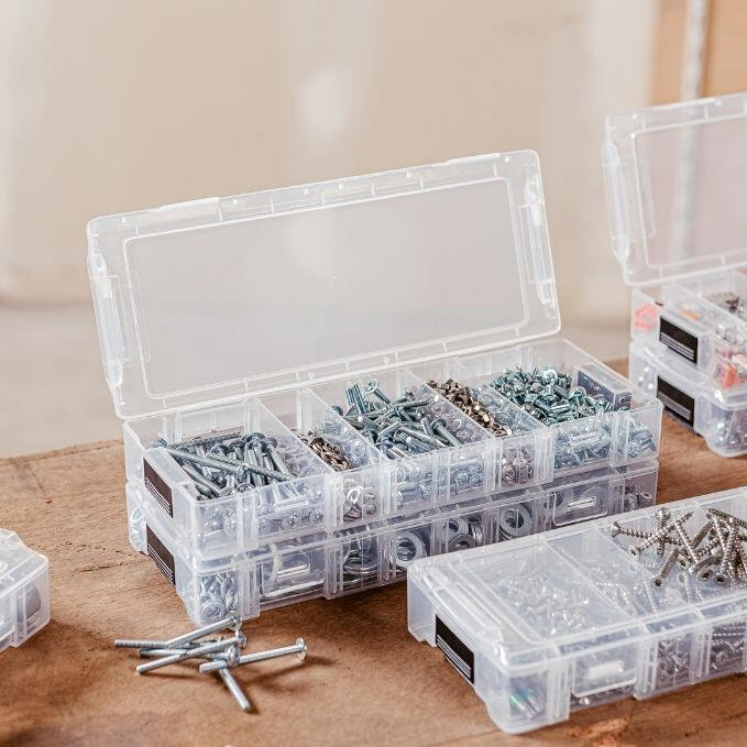Der kleine Sortimentskoffer ist der ganz Große unter den Kleinen – perfekt für alle, die Ordnung bis ins Detail denken. Mit einem Fassungsvermögen für Kleinstsortimente bis 1 kg bringt die L-BOXX Micro Struktur auf kleinstem Raum. Vollständig transparent gehalten, liefert sie jederzeit freien Blick auf Inhalt und Füllstand – ganz ohne Deckelklappen oder langes Suchen.