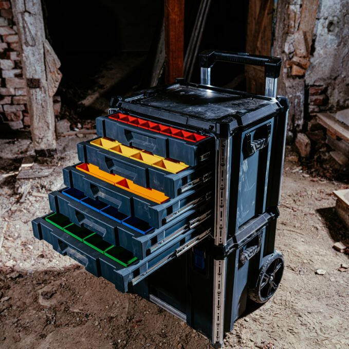 Fünf Schubladen, volle Kontrolle. Der Werkzeugkoffer mit Schubladen, die Large 5 Drawer Tool Box ist das Organisationstalent im L-BOXX Contractor System - robust, funktional und bereit für alles, was Dein Arbeitsalltag verlangt.