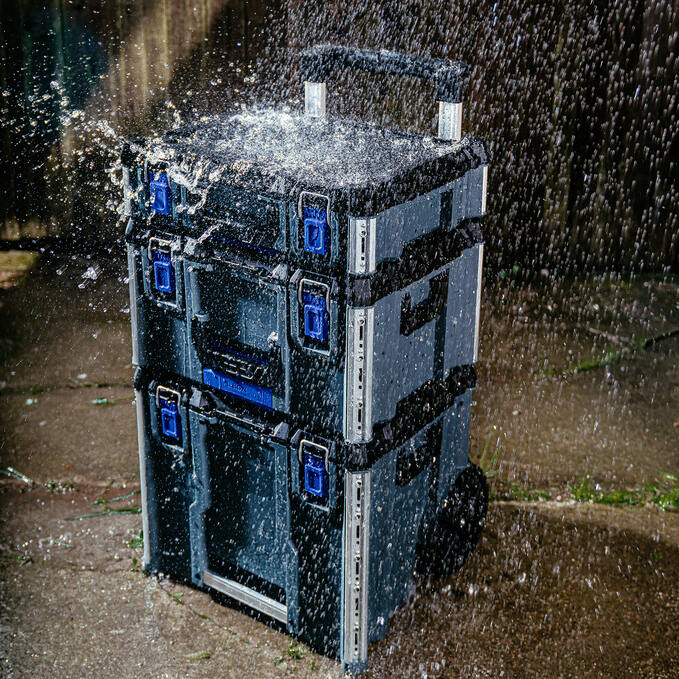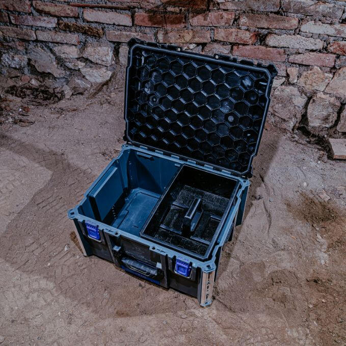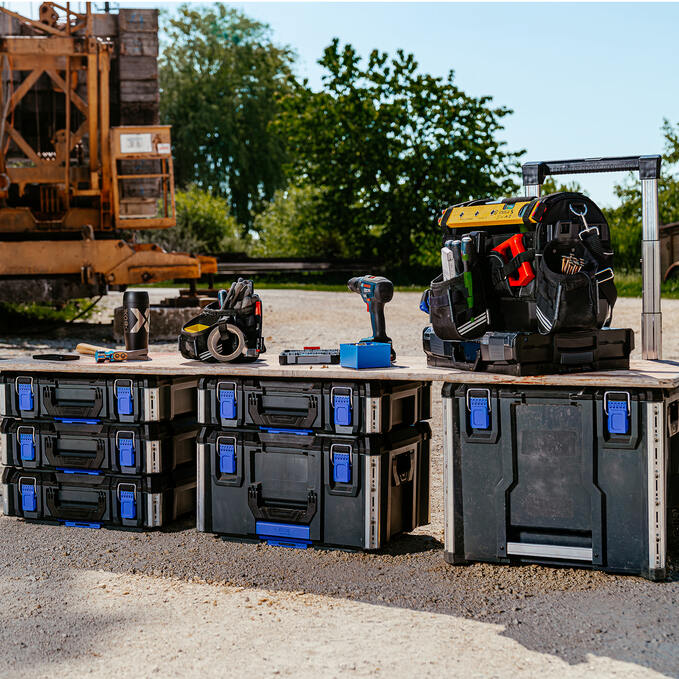 Und weil der Werkzeugkoffer voll kompatibel mit dem L-BOXX Contractor und dem ProClick System sowie der millionenfach bewährten L-BOXX Baseline ist, wird aus einzelnen Komponenten ein perfekt abgestimmtes System, das mitdenkt. Die integrierten Aluminiumschienen sorgen für Stabilität und dienen als Andockpunkt für ProClick Werkzeugtaschen, die M6-Gewinde erweitern die Möglichkeit noch mehr Zubehör sicher zu transportieren - und der Innenraum des stabilen Werkzeugkoffers punktet mit viel Platz. Optionale Trennstege oder die im Lieferumfang entahltene Einhängekiste für Kleinteile mit Schnellzugriff garantieren eine flexible Unterteilung und bringen Struktur ins Werkzeugchaos. Und das wetterfeste Gehäuse (IP65) hält zuverlässig, was es verspricht. Und wenn Du willst, geht noch mehr: Per Klickmechanismus stapelbar, dank Cubingkonzept als stabiler Unterbau für Deine mobile Arbeitsfläche erweiterbar - so bringst Du Flexibilität und Effizienz dorthin, wo sie gebraucht werden. Und wenn Sicherheit auch noch eine Rolle spielt - dann kannst Du dank Safety Lock Deinen Werkzeugkoffer einfach mit zwei optionalen Vorhängeschlössern absperren.