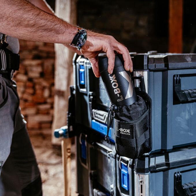 The mug holder clicks securely into place on your ProClick tool belt or the rugged rails of the L-BOXX Contractor. No searching, no improvising, no thirst - just instant access, wherever you are.